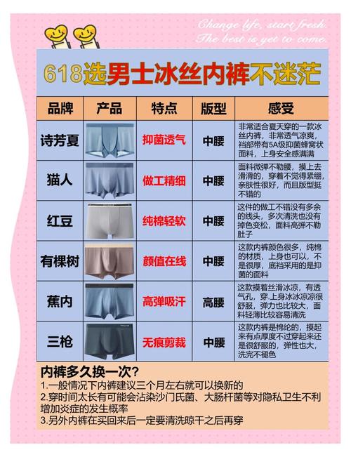 〖Two〗、冰丝内裤对男性没有影响。具体来说:优点:冰丝质地光滑,不易损伤男性娇嫩肌肤;具有清凉作用,能有效减少细菌滋生和体味,保持私处干爽;冰丝内裤不易褪色,对皮肤的伤害较小。缺点:穿久了面料会逐渐变硬,舒适度会大打折扣,因此必须及时更换,一般建议6个月以上就要更换新的冰丝内裤。