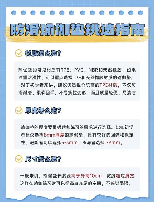 〖Two〗、对防滑性能有较高要求的消费者,特别是专业瑜伽练习者,可选取天然橡胶材质的瑜伽垫。注重性价比的消费者,TPE材质的瑜伽垫是一个不错的选取。注重轻量化或易卷曲携带的消费者,NBR或TPE材质的瑜伽垫更适合。图片展示:综上所述,选取哪种材质的瑜伽垫取决于个人的需求、预算和偏好。
