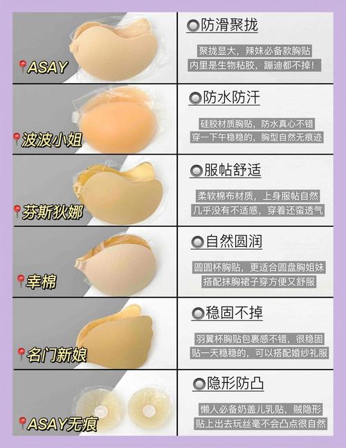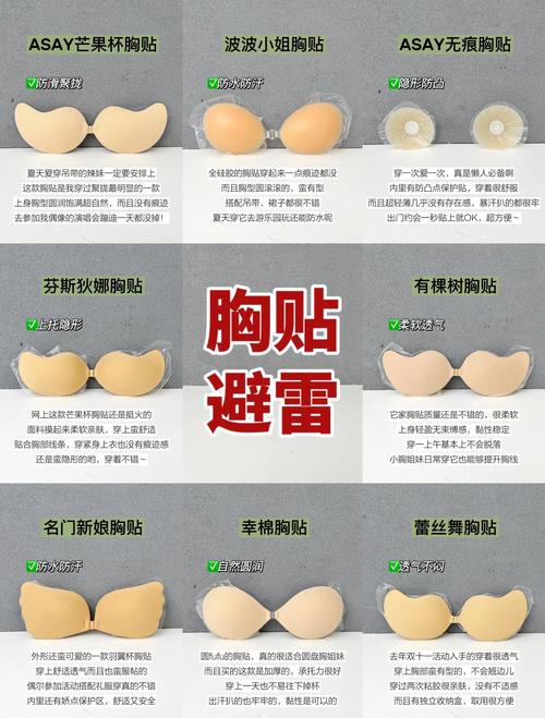 〖Three〗、乳贴是一种贴在胸前乳头部位的贴状物体,用于替代文胸,保持衣物的视觉美感。以下是关于乳贴及其使用方法的详细解乳贴的种类: 乳头贴:较小,仅贴在乳头部位,适合不穿文胸但不想让衣物暴露乳头轮廓的情况。 胸贴:更大,形状类似文胸但没有带子,可以贴合在胸部,适合穿露背装时使用。