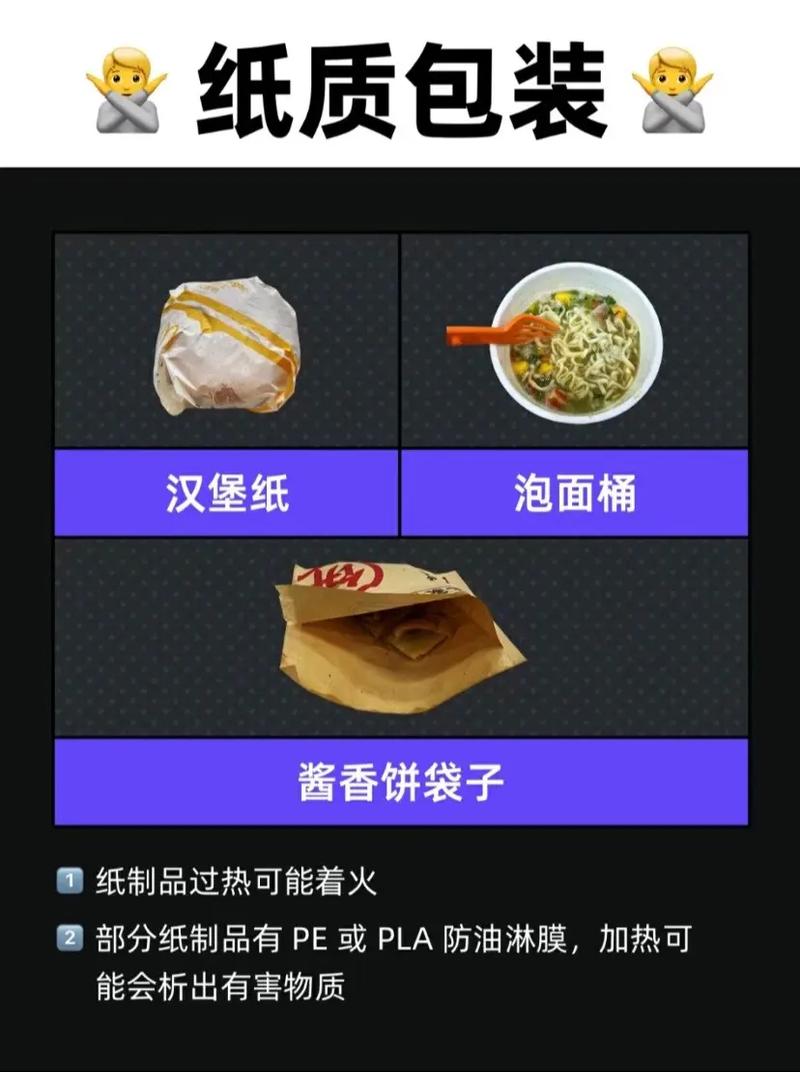 针对特定的品牌如肯德基的纸袋,如果纸袋含有金属锡箔,则绝对不能用于微波加热,因为锡箔会在加热过程中熔化,并可能流入食物中,这对健康极为有害。同样,如果纸袋上带有油墨印刷的图案,这些图案在高温下可能会脱落,进入食物,同样不应在微波炉中使用。