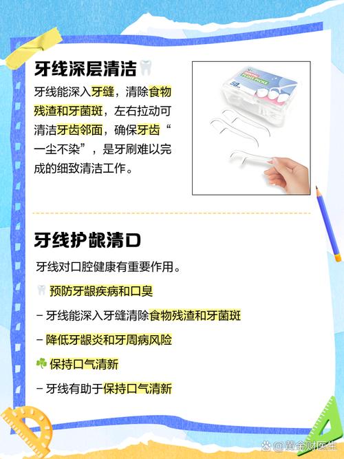 用牙线的好处主要包括及时清除食物残渣、预防口腔疾病,而坏处则主要在于使用不当可能损伤牙龈。好处: 清洁口腔:牙线可以有效清除牙缝中残留的食物以及软垢,这是牙刷难以触及的区域,有助于维持整个口腔的清洁卫生。