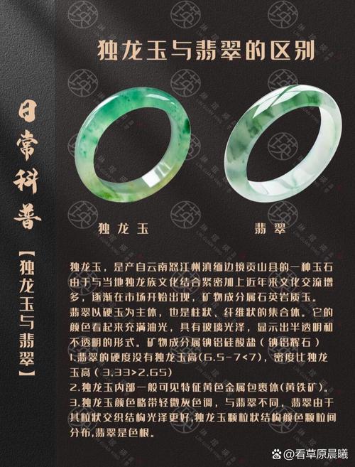 〖One〗、翡翠比独龙玉好。以下是关于独龙玉和翡翠的具体比较:价值与稀有性 翡翠:翡翠是玉中的佼佼者,因其色泽丰富、质地细腻、透明度高而备受追捧。缅甸出产的翡翠尤为珍贵,其市场价值远高于独龙玉。独龙玉:虽然独龙玉在外观上与翡翠相似,但其在市场上的知名度和认可度远低于翡翠。