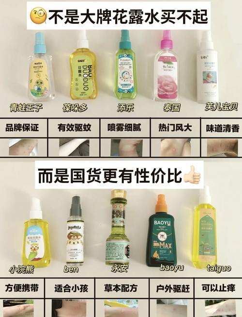 经典驱蚊花露水:这款花露水含有5%的驱蚊酯,具有一定的驱蚊效果。同时,它还有一定的提神醒脑作用,适合在户外活动或者需要提神时使用。冰莲香型驱蚊花露水:这款花露水有着淡雅的花香,可以在驱蚊的同时提供清新怡人的气味。
