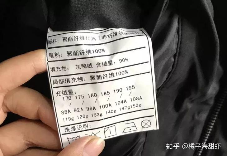 在我国,蓬松度可以不标明在标签当中,但可以通过手感来鉴别。轻轻按压羽绒服,如果很快回弹,说明蓬松度好。图片展示 (羽绒服水洗标示例,标注了绒子含量)(绒子含量解释图,帮助消费者理解绒子含量的概念)总结 综上所述,想要一眼鉴别羽绒服的好坏,关键在于查看水洗标上的绒子含量。同时,还需要注意充绒量和蓬松度等其他因素。