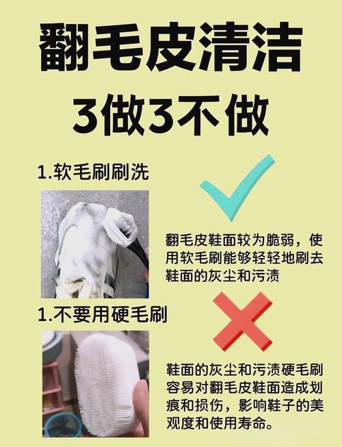 〖Three〗、翻皮皮鞋脏了可以通过多种方法进行打理,包括使用专用清洁剂、酒精、黄米面等清洁材料,以及橡皮擦、软毛刷等工具。首先,你可以使用专用的翻皮皮鞋清洁剂。将清洁剂喷涂在鞋面污渍处,然后用麂皮刷轻轻刷洗,再用湿毛巾擦去泡沫,最后放在阴凉处晾干。这种方法简单有效,且能保护鞋面不受损伤。