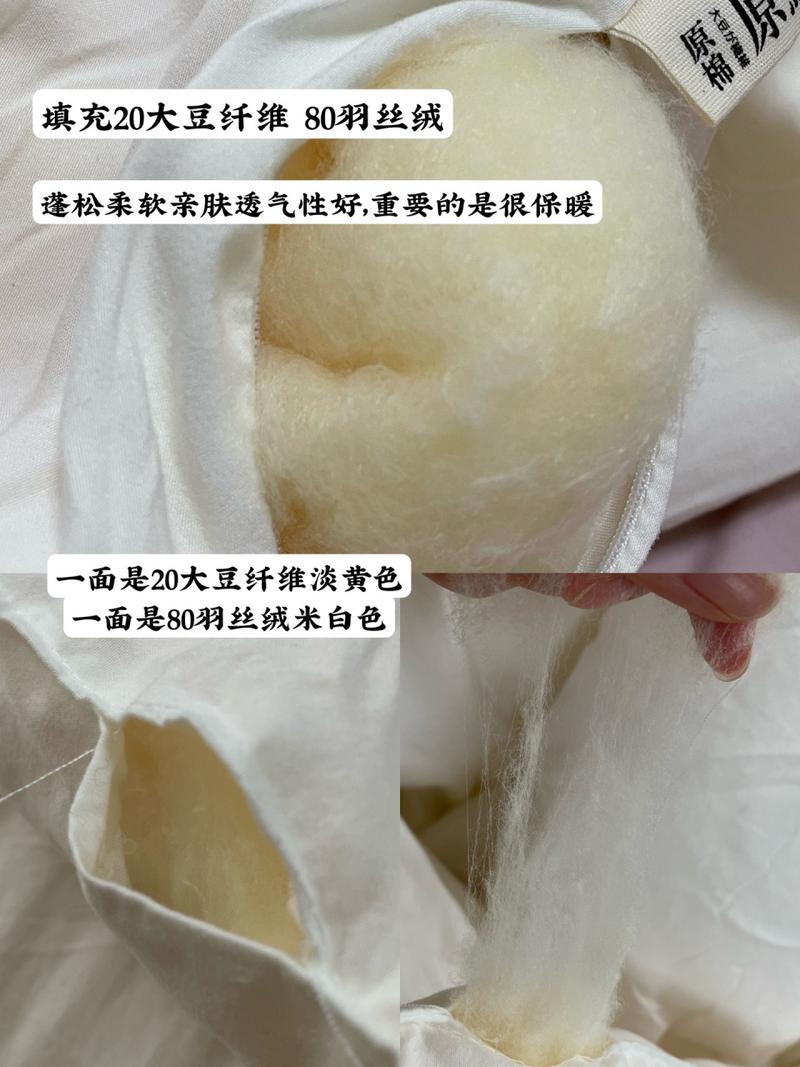 〖One〗、大豆纤维被具有极高弹性、保暖性强、透气特好、重量轻、吸汗防潮、柔软舒适等特点。以大豆蛋白纤维为原料织成的面料手感柔软、滑糯、轻,与皮肤有极好的亲和力,犹如人体第二肌肤。