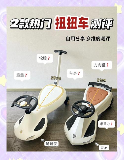 〖Four〗、**澳贝auby贝肯熊炫光扭扭车**:具有8字型流线车身、瀑布型坐沿设计,确保安全和顺畅滑行体验。 **乐卡儿童扭扭车**:配备5防意外+顺滑双轴承+3cm重心降低等特性,确保宝宝操控安全、稳定。 **好娃娃儿童扭扭车**:以高颜值、精工艺和秀气质著称,确保宝宝舒适扭坐和滑行体验。