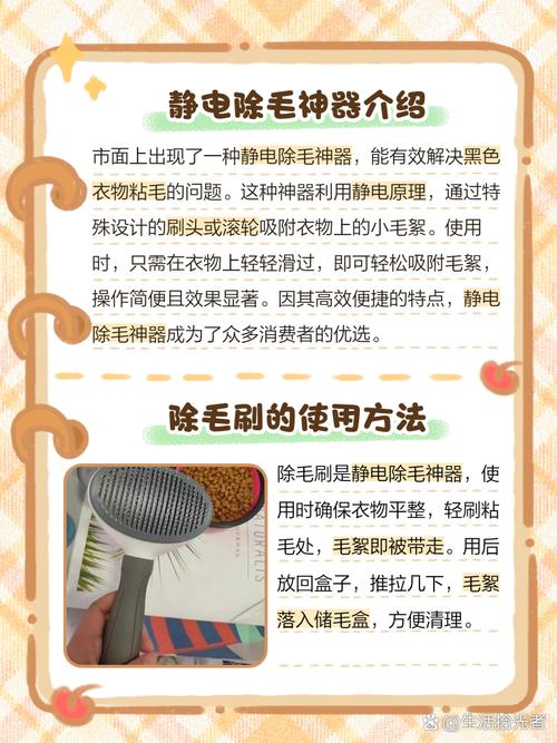 利用宽胶带:- 剪取一段宽胶带。- 将衣服平铺,胶带轻轻贴于衣物表面,毛毛会粘附在胶带上。- 此方法操作快速,能显著去除毛毛。 使用粘毛器:- 沿着一个方向滚动粘毛器。- 这样可以有效地清除衣物上的黑色毛毛。 用湿毛巾擦拭:- 如果衣服不急需穿着,可以用湿毛巾轻轻擦拭。