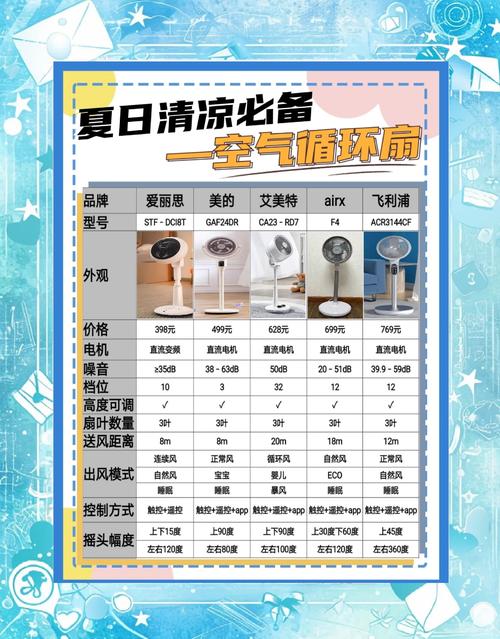 〖Three〗、循环扇不可当普通电扇使用。虽然循环扇在外观上与小型风扇相似,但它们在运行机制和原理上存在显著差异,因此不能简单地将循环扇等同于普通电扇使用。功能差异 普通电扇:主要功能是通过加速空气流动,促进人体表面汗液的蒸发,从而带走热量,使人感到凉爽。它主要关注的是人体对凉爽感的直接感受。