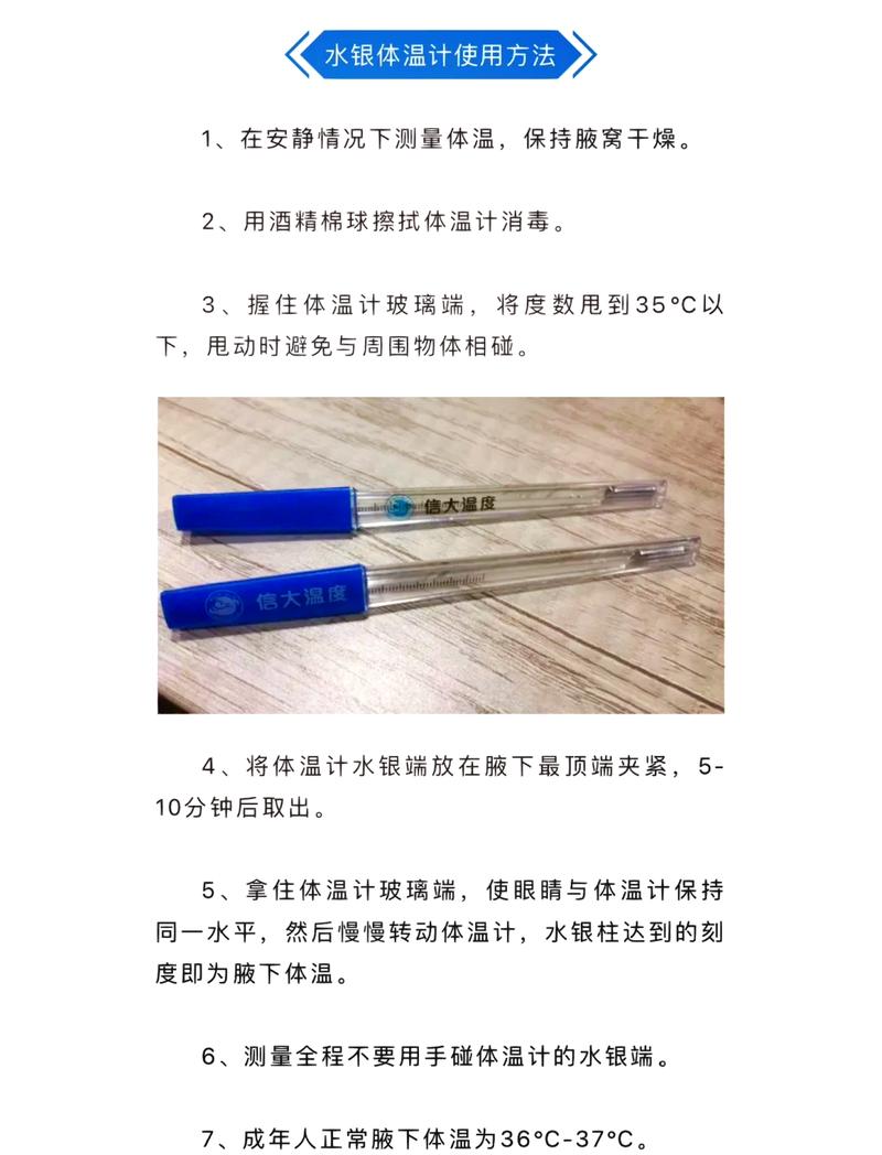 〖Five〗、使用酒精消毒水银温度计并不会对测量结果产生负面影响。若使用水银体温计测量体温发现异常,建议及时就医,重新测量或进行其他检查,以防病情恶化。水银温度计通过水银热胀冷缩的原理进行测温,适用于腋下测量。为保持卫生,避免交叉感染,可用酒精对水银温度计进行消毒,且不会影响其精度。