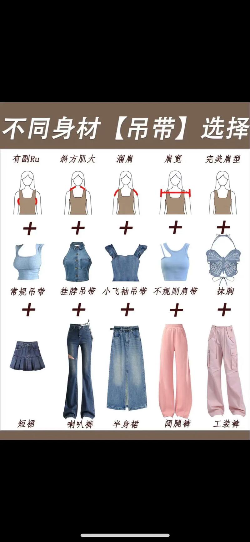 女性朋友,让我告诉你如何根据不同身材挑选合适的吊带! 脖子短?试试V领或大圆领吊带。它们能够帮助你拉长颈部线条,避免选取紧身的圆领或高领吊带。 溜肩?选取细肩带且间距宽的吊带。这样可以避免肩带滑落,告别工装背心和挂脖吊带,它们会让你看起来更有型。