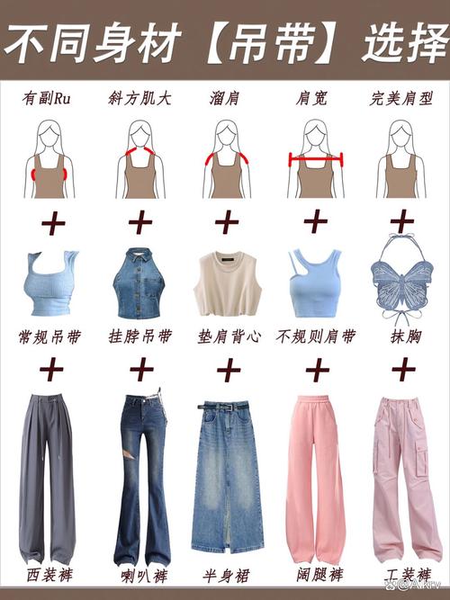 〖Six〗、挑选吊带时,需要注意以下几个要点:领口设计:对于上半身偏壮的女生来说,挂脖设计的吊带能够很好地修饰肩部线条,使肩部看起来更加纤细。而U字领则容易显得宽背后背,因此不太适合这类身材。细吊带相比粗吊带更能显瘦,同时也能增加整体造型的精致感。吊带宽度:吊带的宽度也是挑选时需要考虑的重要因素。