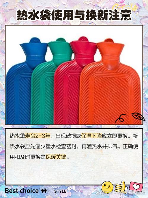 一旦发现热水袋漏水,应立即停止使用,以避免触电或烫伤等安全隐患。检查漏水原因:仔细检查漏水部位,判断是热水袋本身材质破损、灌水口密封不严还是其他原因导致的漏水。尝试修补:如果漏水是由于灌水口螺丝滑牙或密封不严,可以尝试拧紧螺丝或更换密封垫圈。
