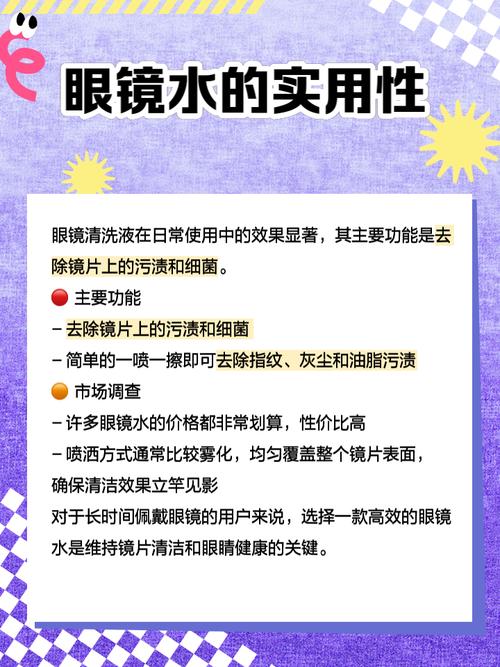 〖Two〗、花露水擦眼镜不会影响眼镜度数。以下是对此观点的详细解释:清洁效果 花露水中的酒精含量较高,这使得它成为一种有效的清洁剂。当使用花露水擦拭眼镜时,酒精能够迅速溶解并去除镜片上的灰尘和污垢,保持镜片的清洁。这种清洁效果有助于确保眼镜的透明度,从而不影响视力。