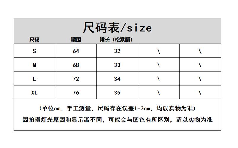 〖Six〗、避免大一码或小一码:百褶裙一般都是松紧腰设计,大一码可能会导致穿一段时间后腰部变大,穿不住;而小一码则可能会勒肚子,不仅不舒适,还可能暴露腰部赘肉,影响美观。