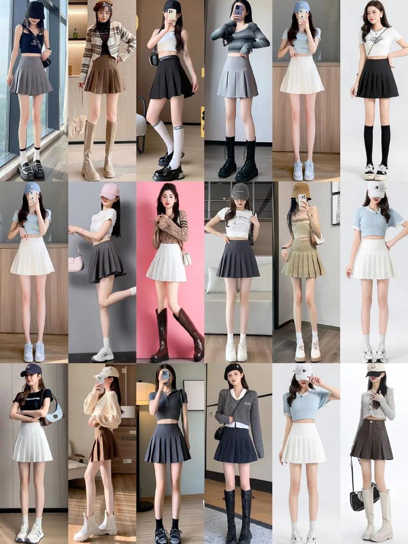 〖Two〗、褶皱越细密的百褶裙,显瘦效果越好。也就是说,对于胯宽腿粗的姐妹,要多去选取褶皱细密的款式。但褶皱较宽的百褶裙,更易凸显出脚踝的纤细感,对小腿较粗的姐妹更为友好。另外 对于褶皱高度的挑选,则要完全取决于你腹部赘肉多少了。
