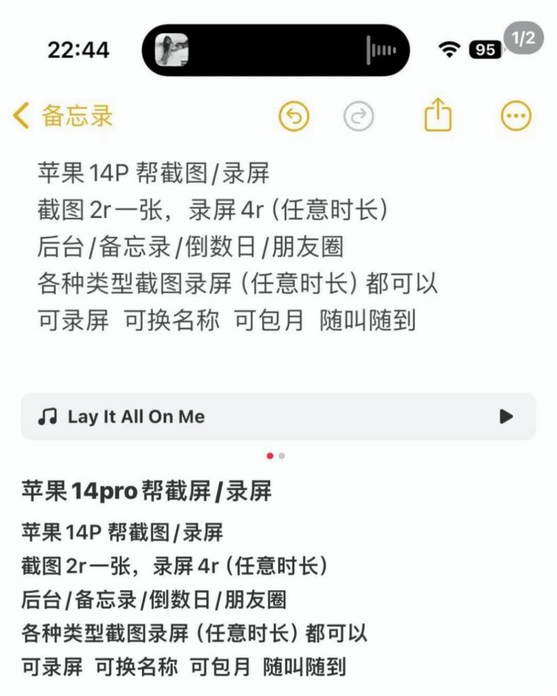 对于这样问题,有人觉得这很可以,直接告诉别人我换手机了;也有人觉得这样会暴露隐私 iPhone14截屏带挖孔怎么解决关掉?近来我测试出来的 iPhone 14 Pro 截屏会带灵动岛的场景有两个,一个是灵动岛正在显示内容,比如拍照和录音时中间显示小绿点小黄点,如图 2;再比如正在放歌,如图 3。