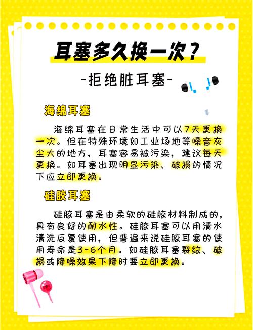 耳塞建议每3个月更换一次。以下是详细解释:耳塞作为保护听力的重要工具,其使用寿命和更换频率受到多种因素的影响。一般来说,耳塞的更换周期建议为每3个月进行一次。这个周期是基于大多数人的使用情况而设定的。