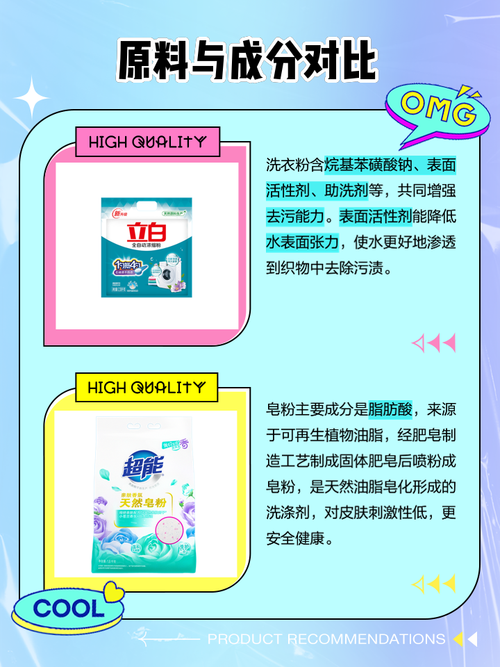 〖Three〗、洗衣粉和肥皂可以一起使用。以下是具体分析:化学性质相同:肥皂和洗衣粉都属于碱性化工产品,其pH值通常在9至11之间。因此,它们之间不存在酸碱中和现象,不会相互抵消去污效果。协同去污效应:肥皂中的脂肪酸钠在与水中的钙镁离子结合时,会形成沉淀,从而影响其去污力。