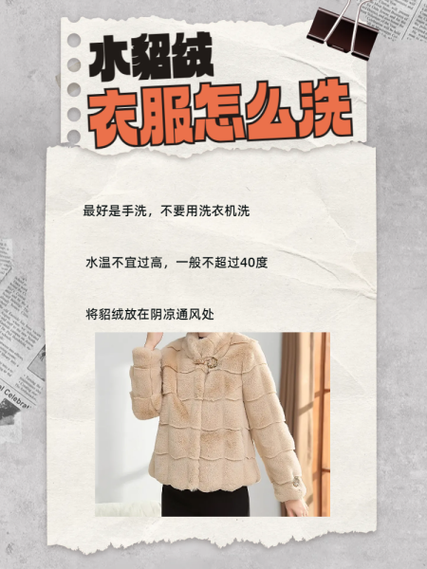 水貂绒的衣服比较好采用手洗的方式。洗衣机中的滚动和搅拌动作容易损伤水貂绒,导致摩擦掉毛,影响衣物的外观和保暖性能。选取洗涤剂 清洗水貂绒衣物时,应选用专门清洗水貂绒衣服的洗衣液。