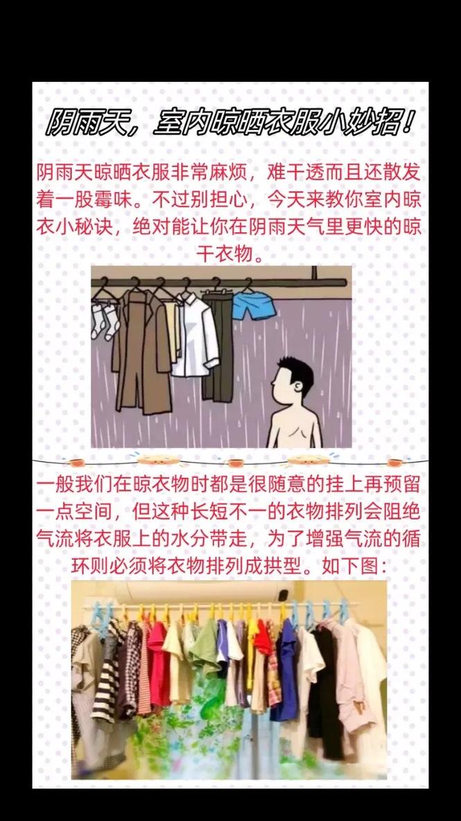 〖Five〗、为了让衣服尽快地变干,建议在下雨前就将衣物放在室内,确保在气温变低,湿度增大的情况下仍处于相对干燥的环境中。同时,在晴天前晾晒已经晾干了的衣物,以增加衣物的干燥程度。衣物的种类 不同类型的衣物干燥的时间也不同。