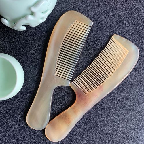 选取牛角梳的材质时,应根据个人体质和发质来决定,以下是几种常见牛角梳材质的推荐: 黄牛角梳 适用人群:适合大众使用,尤其适用于头发稀少、脱发严重的人群。黄牛角梳的性温特性,有助于改善头皮环境,可能对头发生长有一定的促进作用。优点:耐用且性价比高,是日常护理头发的不错选取。