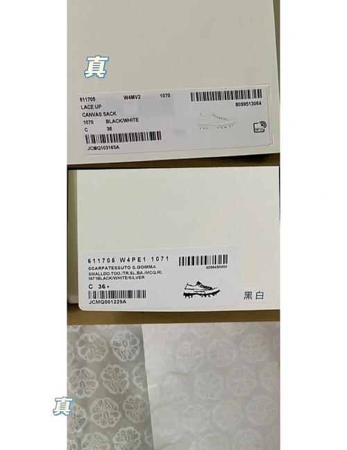 麦昆小白鞋真假辨别与区别对比方法主要包括以下几点:包装细节 正品防尘袋有清晰的Alexander McQueen品牌标志。正品鞋盒侧面有详细且描述正确的信息标签,字体印刷格式规范,款色、尺码、序号等信息标注准确。鞋型外观 正品鞋型侧面因增高底显得厚重,但弧线流畅。