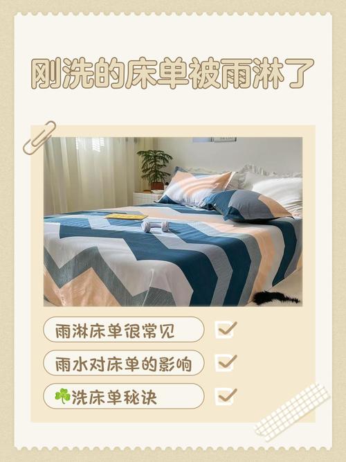 〖Five〗、床单淋了几滴雨不必立即清洗。几滴雨水对床单的影响微乎其微,不会导致明显的污渍或细菌滋生。然而,如果床单被雨水完全湿透,尤其是在户外放置较长时间后,应考虑清洗以去除可能的污渍和细菌。淋雨后的床单可能携带一些病菌,如果对此感到担忧,可以选取清洗。