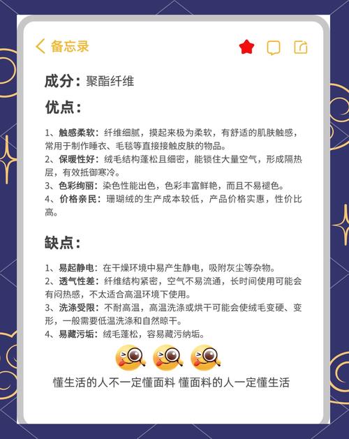 〖Two〗、透气性较差:虽然珊瑚绒面料具有良好的保暖性能,但其透气性相对较差。在炎热的夏季使用时可能会感到闷热不适。因此,在选取珊瑚绒面料产品时需要根据季节和使用场景进行权衡。综上所述,珊瑚绒面料具有手感柔软、覆盖性好、保暖性能强等优点,但也存在掉毛、易起静电、清洗不便等缺点。