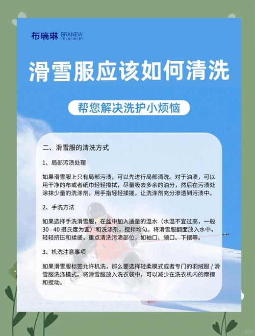 〖Two〗、准备阶段:检查滑雪服的口袋是否已清空。配置洗涤液:在水槽里倒满冷水,并混合一定剂量的清洁剂。清洗:将滑雪服放入水槽中轻轻搓洗,确保清洁剂均匀分布。至少冲洗两次,确保所有清洁剂已经洗净。拧干:轻轻拧去滑雪服的水分,避免使劲拧干或按压布料,以防损伤面料。