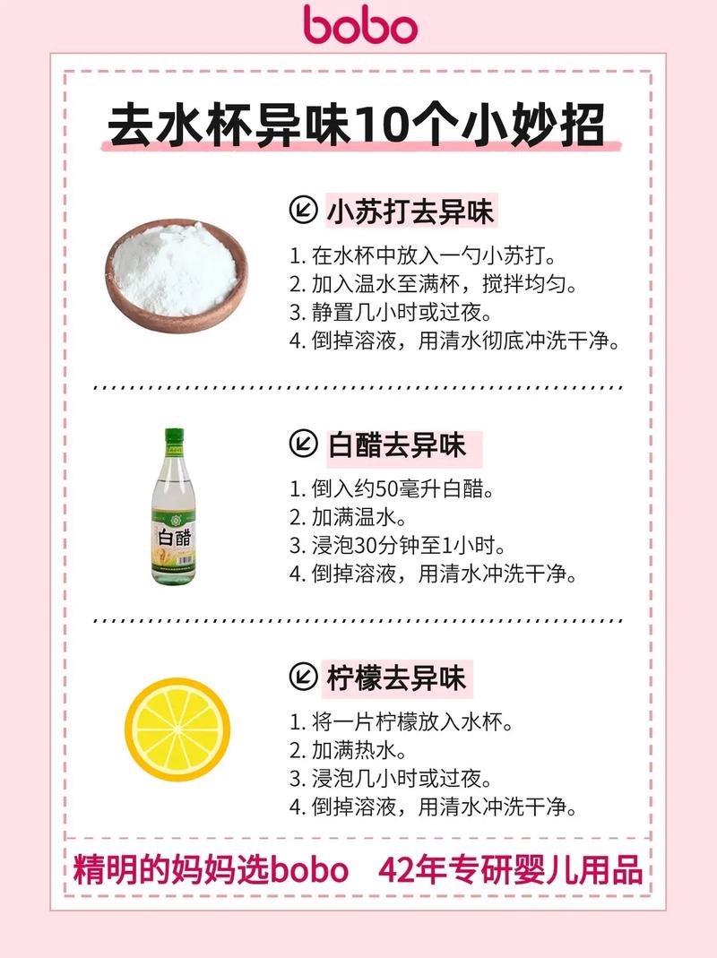 〖Three〗、买的水杯有塑料味可以这样去除:塑料杯白醋去味:先用洗洁剂将杯子内清洗干净,然后再将开水加白醋进行清洗,可同时去味和水垢,最后将杯内清洗干净即可。塑料杯茶水去味法 先用洗洁剂将杯内清洗干净,然后将茶叶放入杯中加开水,拧紧杯盖,放置约四小时,最后将杯内清洗干净即可。