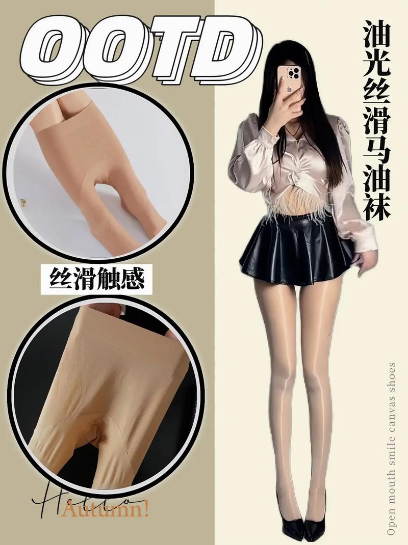 马油丝袜被称为“马油”主要有两方面原因:一是这种丝袜的面料比普通丝袜更丝滑,如同马油一样润滑亲肤,穿着时不扎不痒,对敏感肌友好;二是穿上后双腿会呈现出像抹了马油般光滑细嫩的效果,自带磨皮感,好似无暇“裸肌”。