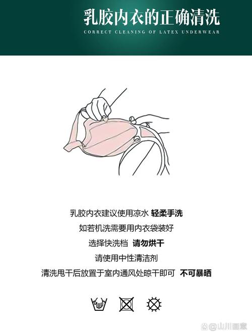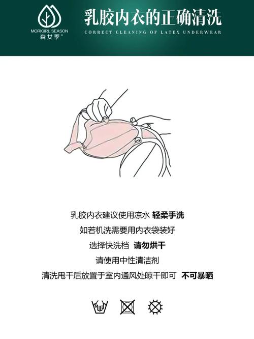 乳胶内衣的清洗方法如下:洗涤方式:建议手洗。使用30°C40°C的温水,并选取内衣专用清洁剂或具有内衣洗护作用的洗衣液进行清洗。避免使用:不要使用漂白剂或消毒液,以免影响清洗效果。清洗手法:可以轻轻揉搓罩杯,或使用背带轻柔搓擦罩杯面及其余部分。
