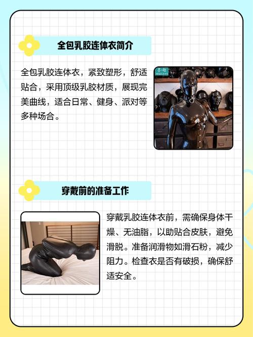 首先,准备阶段至关重要。确保身体干燥、清洁,避免油脂或汗水影响乳胶材质的贴合度和舒适度。洗澡或用湿毛巾擦拭身体是必要的。穿上内裤是必要的一步。这不仅提供额外保护,还能让身体感觉更加舒适。下面,开始穿上全包乳胶连体衣。先将衣服展开,从头部开始穿上,注意保持平整和舒适。