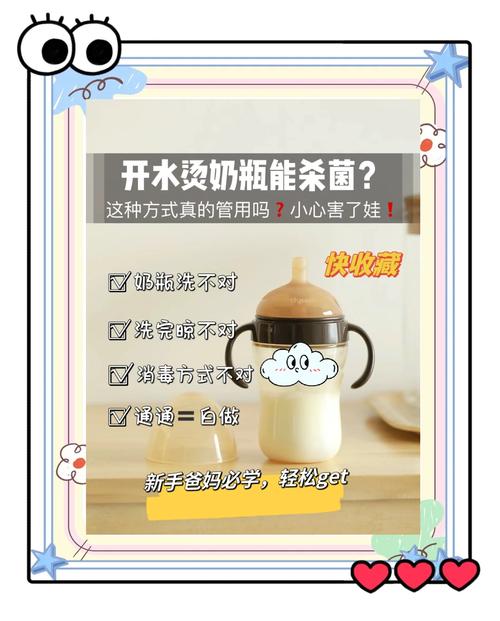 新买的奶瓶不能仅仅用开水烫,还需要在开水中煮沸几分钟进行消毒。具体来说:消毒方式:新买的奶瓶由于放置时间长以及环境等因素的影响,容易积存过量的细菌和病毒,同时生产过程中可能残留不利于宝宝健康的化学物质。因此,仅仅用开水烫一下是不够的,需要在开水中煮沸三分钟左右,以彻底消毒奶瓶。