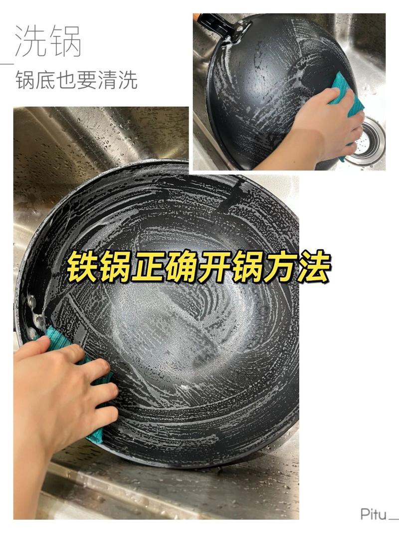 〖One〗、铁锅开锅不生锈不粘锅操作步骤如下:温水清洗开锅 和大多数的清洗杀菌消毒步骤都是一样的,买来之后的铁锅直接放多半锅水加热到煮沸,下面将热水腾出去,使用钢丝球或者一些专门儿清洗锅具的用品反复擦拭清洗。