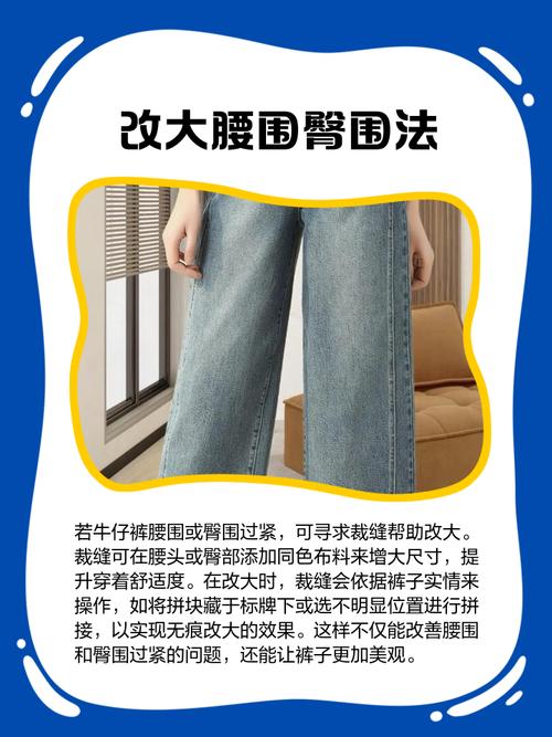 〖Two〗、牛仔裤小了可以通过以下几种方法变宽松:方法一:添加松紧带 将牛仔裤清洗干净并晾晒好,平整地放在桌面上。使用剪刀沿着牛仔裤缝合的边缘剪开。在剪开的位置添加一条松紧带,松紧带的长短可以根据腰围尺寸确定。添加好松紧带后,用针线或缝纫机将其固定,这样牛仔裤的腰围就变大了,可以随意穿脱。