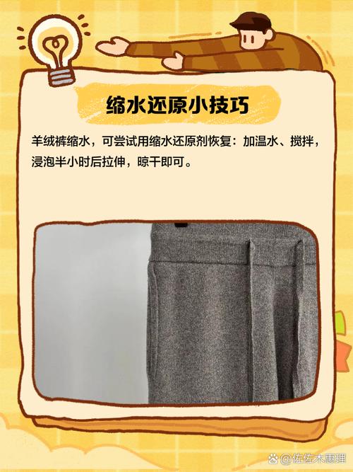 〖Five〗、羊绒裤怎么洗不缩水:选取中性洗涤剂:选取中性温和的洗涤剂,与水按3%的比例混合进行洗涤,避免使用碱性过强的洗涤剂,以免损伤羊绒纤维。控制水温:洗涤时水温控制在35度左右,不宜过高或过低,以防羊绒裤缩水变形。手洗并反面清洗:避免机洗,尽量手洗。