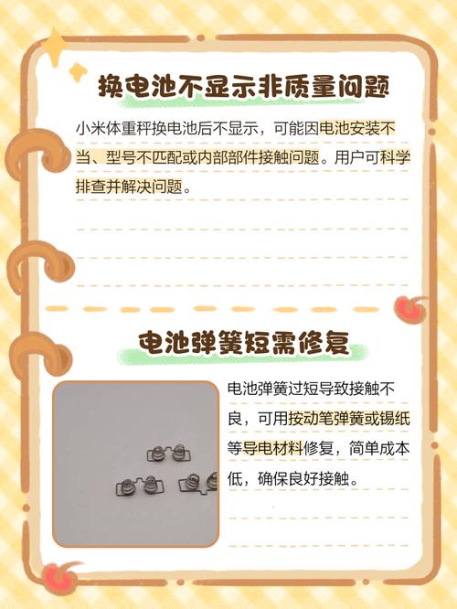 小米体重秤换上新电池后没有显示,可能有以下原因及解决办法。可能是电池安装不正确。检查电池正负极是否安装反了,按照体重秤电池仓内的正负极标识重新正确安装电池。同时,要确保电池与电池仓的金属触点充分接触,若触点有脏污,可能影响导电,可用干净的软布轻轻擦拭触点后再重新安装电池。