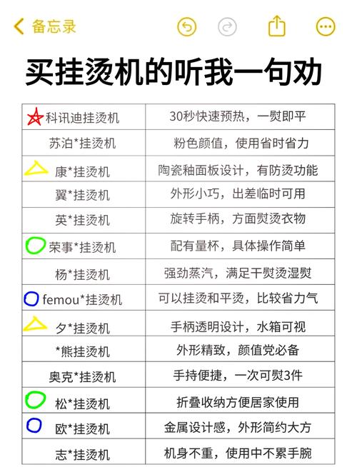 挂起衣物:熨烫完毕后,把熨烫好的衣服挂起来,避免折叠造成新的褶皱。收纳挂烫机:将蒸汽挂烫机收起来放在墙角等不挡路的地方,以便下次使用。注意事项:在使用蒸汽挂烫机时,要注意安全,避免烫伤。熨烫完毕后,要等待熨斗冷却后再进行收纳,防止烫伤或损坏机器。