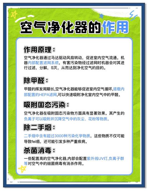 〖Two〗、家里放置空气净化器确实有用,但需注意正确使用以发挥最佳效果。其核心作用体现在对甲醛、苯类、粉尘、烟及烟雾等污染物的净化能力上,但若使用不当(如位置错误、滤网未清洁等),可能降低净化效率甚至引发二次污染。