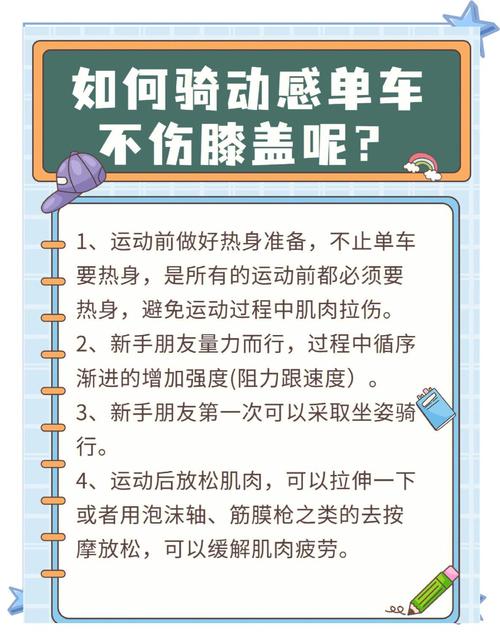 〖One〗、正确骑行动感单车通常不会伤膝盖,但姿势错误、速度过快或强度过大等不当操作会增加膝盖受伤风险。以下是具体分析及预防措施:错误骑行导致膝盖受伤的原因姿势不正确:骑行时身体左摇右晃或上下跳跃幅度过大,会使膝盖受到的冲击力显著增加,长期如此易引发急性或慢性运动损伤。