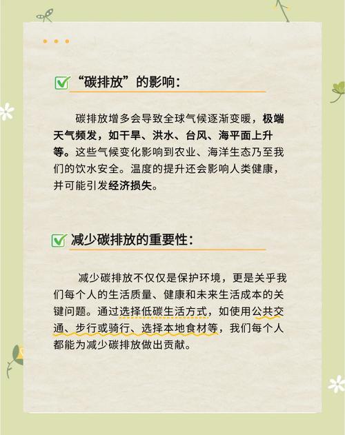 〖Five〗、碳减排是指减少二氧化碳等温室气体的排放量。以下是关于碳减排的详细解释:定义:碳减排,顾名思义,旨在减少生产、生活中产生的二氧化碳等温室气体的排放量,以应对全球气候变化。重要性:碳减排对于环境保护和可持续发展至关重要。