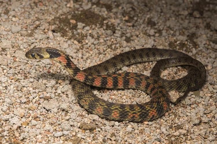 野鸡脖子蛇是一种微毒的游蛇。虎斑颈槽蛇有着很多俗称,称为野鸡脖子、野鸡脖子蛇、野鸡脖子毒蛇、雉鸡脖等,是因为这种蛇的颈背有一明显颈槽,枕两侧有一对粗大的黑色斑块,颈部位置为鲜红色。注意。