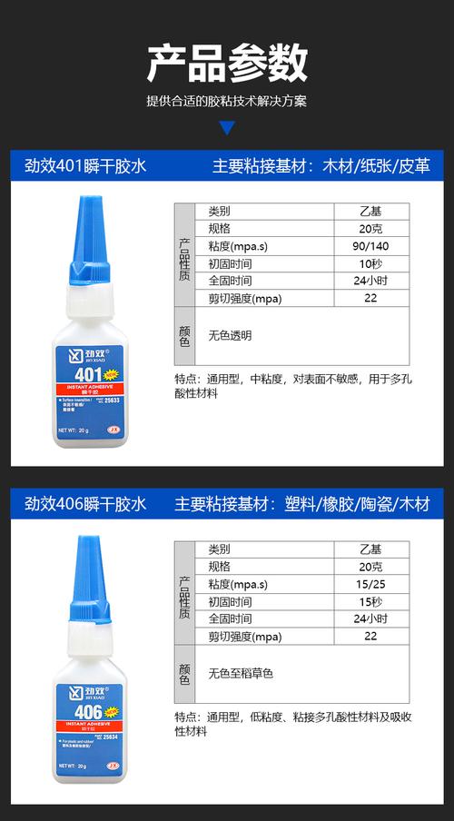 〖Two〗、406胶水可广泛应用于各种材质的粘接,如塑料、钢、铁、钛、铝、不锈钢、水泥、陶瓷、玉石、石材、木材等。它不仅可以粘接同类材质,还能实现异种材料之间的牢固粘接。