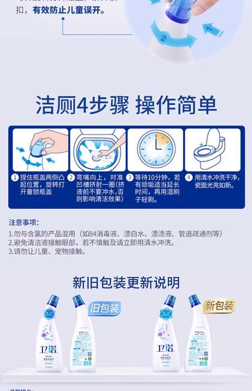 使用方法:在使用洁厕灵疏通下水道时,建议直接将洁厕灵滴在堵塞的位置,等待一段时间后,再使用适量的水冲洗,这样可以帮助更有效地清除堵塞物。注意事项:需要注意的是,洁厕灵不能和84消毒液混用,因为两者混合后可能会产生有毒气体,对人体健康造成危害。