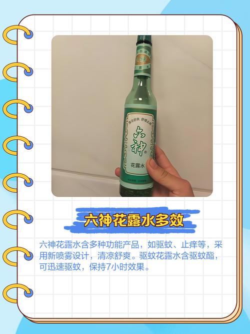 〖Two〗、六神驱蚊花露水稀释的方法是用一克的花露水配五克的水。以下是对六神驱蚊花露水稀释方法的详细解释及注意事项:稀释比例 六神驱蚊花露水稀释的标准比例为一克花露水配五克水。这意味着,如果你有一克的花露水,就需要加入五克的水进行稀释。