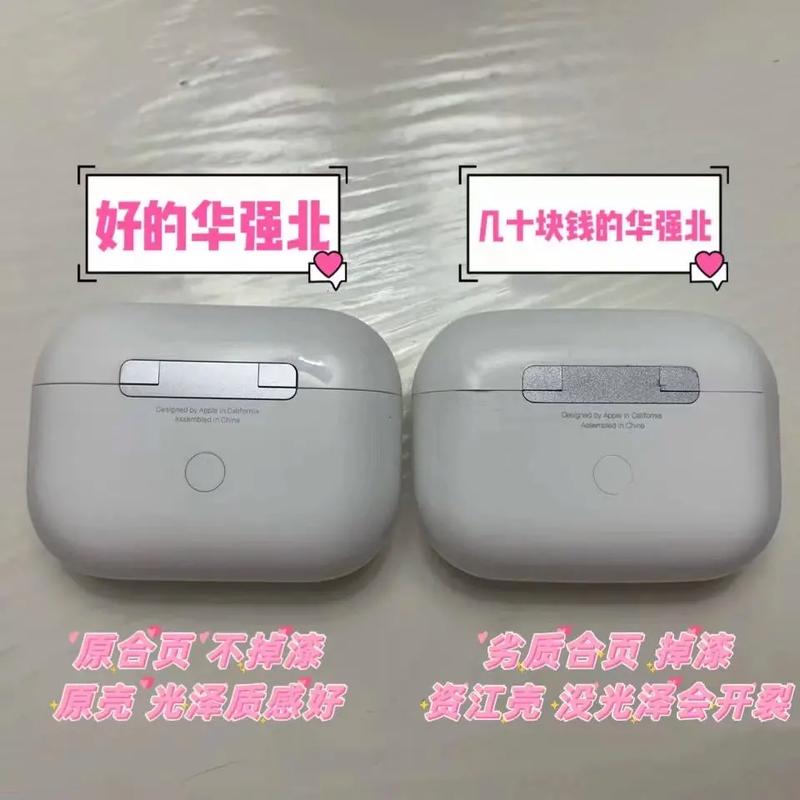 喷码不一样。如果仔细对比的话,华强北AirPods的喷码内容和正品完全不同,其实看看喷也能分辨出来。市面上也有些耳机喷码和水果正品一样,内销版的少,如果有,估计也是外贸版本。