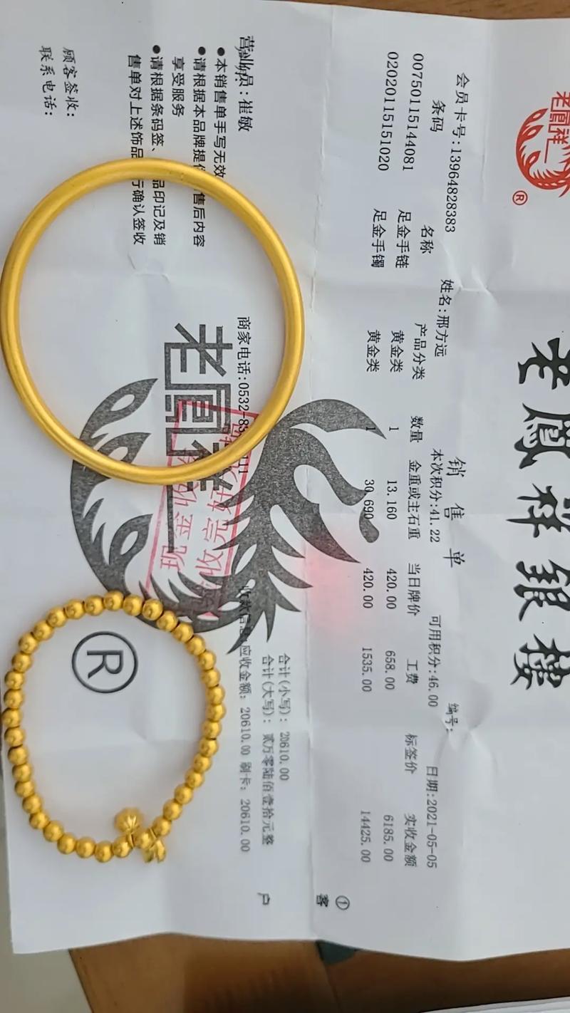 〖Two〗、老凤祥一口价手镯是3D硬金。所谓的一万多的一口价3D硬金手镯买的都是工艺制作,而实制克数才这么一点。所以你们如果想买黄金手镯千万别买一口价3D硬手镯,店里的员工总会忽悠你去买这个,然后会说比传统黄金手镯好看,硬度会高点等等忽悠你,还会说以后不喜欢了,可以换店里所有黄金产品。