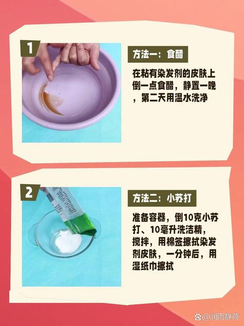 〖One〗、清水冲洗:如果是刚刚弄到手上,可以立刻用毛巾擦拭掉染发膏,然后清水多冲洗几遍。食醋或烟灰水擦拭:将食用的米醋或烟灰涂抹到染到染发剂的皮肤上,停留10分钟再用水清洗,也可以再用肥皂进行清洗。同样能达到清洗染发膏的效果,而且方法简单且不伤皮肤。